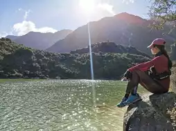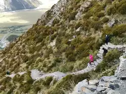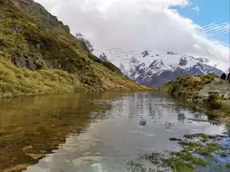 จากนั้นเราก็ค่อยๆเดินขึ้นทางชันต่อไปเรื่อยๆ ดีที่เส้นทางเดินนั้นค่อนข้างดี มีบันไดที่ถูกสร้างไว้อย่างแข็งแรง เพื่อขึ้นไปที่จุดที่2 "Sealy Tarns Viewpoint" กับระยะทางประมาณ 2.5 กิโลเมตร กับความสูงประมาณ 1,300 เมตรเหนือระดับน้ำทะเล จุดนี้มีบ่อน้ำใสๆที่สะท้อนเห็นภูเขาหิมะที่เป็นฉากหลังอย่างสวยงาม เราขอแวะถ่ายรูปกับวิวตรงนี้สักพักใหญ่....อากาศเริ่มเย็นลด ลมแรงมากขึ้น ทำให้เราต้องสวมแจ็คเกตกันลมเพิ่มอีกนึงชั้น