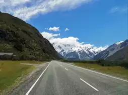 🚌 จากนั้นเราก็ออกเดินทางจากCampsiteไปยังMount Cook กับวิวด้านหน้าที่สวยอลังการ ท้องฟ้าสีฟ้าครามตัดกับภูเขาหิมะและต้นไม้เขียวตลอดสองข้างทาง....เมื่อเราเดินทางไปถึงจุดจอดรถก็เริ่มออกเดินเท้ากันทันที เราเดินไปจุดแรกที่ "Kea Point" กับระยะทางเพียง 3.2 กิโลเมตร เพื่อไปชมวิวของทะเลสาบMueller Lake ซึ่งวิวฝั่งตรงข้ามคือเส้นทางที่เราเดินไปทะเลสาบHooker Lakeเมื่อวานนี้
