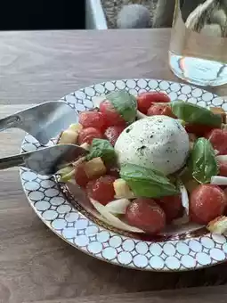 The burrata cheese was rich and the cherry tomatoes were sour~!