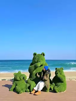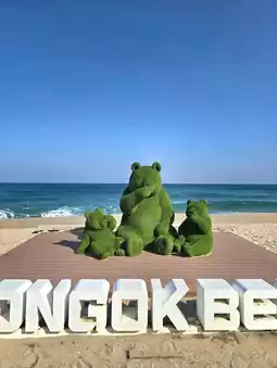 Gangneung Yeongok Beach with a cute green bear family💚
