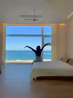 The brick-colored accommodation exterior was impressive and pretty enough to catch your eye from afar, and it was emotional, and even when you open the door and go out of the accommodation, the blue sea spread out, so it couldn't be more romantic. 💭 When you open the door and go in, you can see the sea in a picture frame, and you can heal in a warm room all day long, and even in the pool, you feel like you're connected to the sea, and you can splash around in the hot water pool and just let time pass by. 🥹 In the evening, you can see the sunset, and the next morning, you can see the beautiful sunrise, so it's a Bui where everything is perfect and full of happiness 🕊️