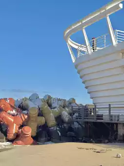 This is Gangneung Sagneunjin Beach, famous for its pretty and colorful breakwater.