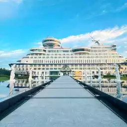 🌊 Sun Cruise Resort and Yacht 🌊 is a hotel that seems to have come out of a dream! If you have ever dreamed of sleeping on a luxury cruise ship but do not want to get seasick, this is the answer! This state-of-the-art hotel is located on a cliff by the sea in Gangneung, South Korea. It allows you to experience the atmosphere of “cruising” without having to leave the shore, with a magnificent ocean view.