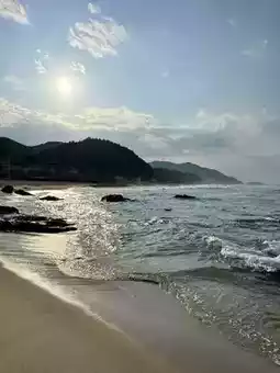 There weren't many people, making it a great place for a quiet walk or to relax while gazing at the sea. The surroundings of the beach were also well-maintained and clean. It was a place where you could fully feel the emotional impact of nature.