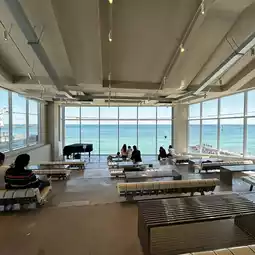 ⭐️Recommended Points: A stylish cafe with a glass-walled ocean view. ♪