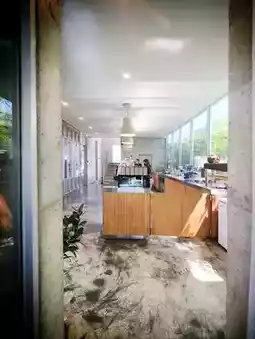 The Chodang Whale Roasting Cafe features an adorable whale character and boasts a stylish interior that represents Gangneung's charm. Upon entering the cafe, you’ll be amazed by its stunning design, where the interplay of light and space creates a captivating atmosphere.
