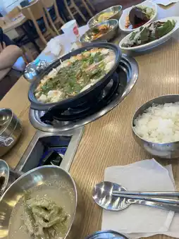 🍩 The next morning, I tried the famous Chodang tofu in Chodang Village, Gangneung. There were signs pointing to "Chodang Tofu Village." While driving, I stopped by Jeong Eun-sook's Chodang Sundubu restaurant and had sundubu hot pot.