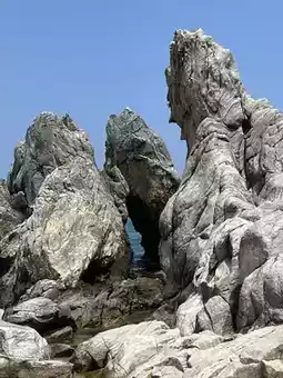 🌲 Wanting to see the sea, I drove along the national road, but the sea only appeared briefly and then disappeared. Upon arriving at Chuam Beach, I found Chuam Station, which made me want to try a train trip. The path leading to Chuam Candle Rock was truly breathtaking. The sea's color was uniquely beautiful, and the rocks looked like sculptures. Crossing the suspension bridge was also quite fun.