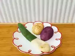 The green onion-shaped bread had green onions, and the sweet potato-shaped bread had sweet potatoes.