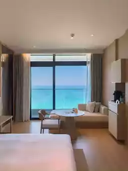 The rooms feature a modern yet warm interior design, offering a seamless connection to the ocean view. You can also relax by the pool while taking in the ocean scenery!