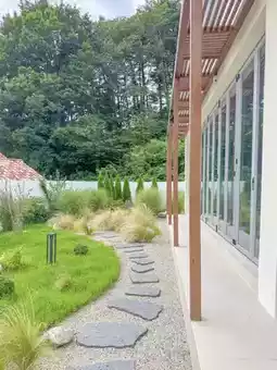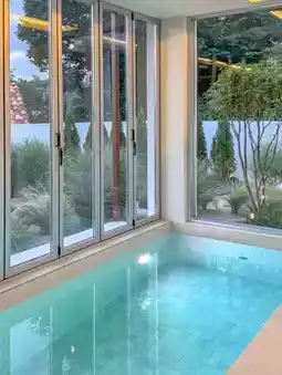 The garden view through the folding doors and full-length windows was truly beautiful while swimming. I wish I could have opened the folding doors to swim, but unfortunately, it was too cold during peak mosquito season, so I couldn't. It was still beautiful in its own right. (˶’ ᵕ ' 🫶)