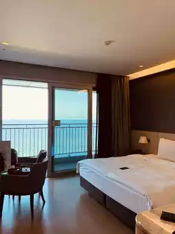 Booking an Ocean View room at St. John's Hotel elevates the entire Gangneung experience. The view is not just a glimpse of the sea, but a full, panoramic spectacle of the East Coast thanks to the floor-to-ceiling windows that span the width of the room. The absolute highlight is the sunrise experience. You can literally set your alarm, open the blackout curtains, and watch the sun rise out of the ocean from the comfort of your bed.