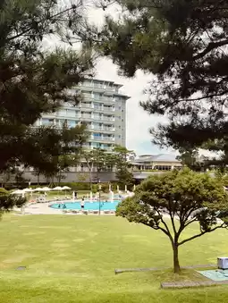 The resort focuses heavily on open space and relaxation. It features a clean outdoor swimming pool (seasonal) and expansive, manicured lawns perfect for children's activities or light picnics. Key to its appeal is the direct access to Gyeongpo Beach, which is just a minute's walk away. On-site amenities also include a Sky Lounge, Lobby Lounge, and Fitness facilities. The beautiful gardens and seamless access to the natural coastline provide a fully integrated resort experience