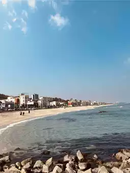 The beach is backed by a pleasant stretch of pine forest, which offers a natural buffer and a lovely, fragrant contrast to the salty air. The atmosphere encourages leisurely rest; whether you’re sitting on the soft sand or one of the nearby seaside platforms, you feel instantly at ease. Sacheonjin Beach (사천진해변) is a great choice for families and couples seeking a charming, picturesque spot without the overwhelming crowds.