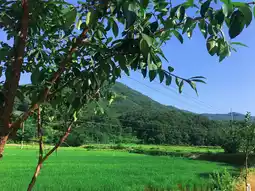While strolling along a quiet country road in Gangwon Province, I stumbled upon an unexpectedly picturesque scene. The blue sky stretching endlessly, power lines connecting the horizon, vast rice fields, and distant mountain ridges all came together like a painting, creating a serene space where time seemed to stand still. 🍃