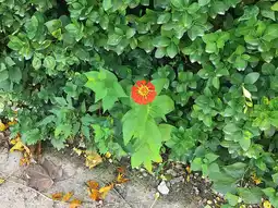 The nameless wildflowers scattered here and there, along with the unkempt grass, added to the natural charm of the place. Yellow cosmos and red blossoms lining the dirt path perfectly complemented the warm, rustic vibe. As I walked further, I came across a house with white walls and wooden doors, reminiscent of an old hanok. Its front yard was brimming with flowers, exuding the essence of a traditional Korean village. 🏡