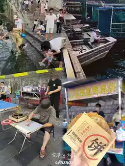 ▸ Boat vendors selling dried goods are located on both sides of the floating bridge! Taking photos back from the floating bridge 📸 Jianchun Gate feels even more majestic.