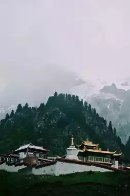 Along the way, grasslands, forests, snow-capped mountains, and temples alternate. Donggu Temple is built against the mountain, housing many thangka paintings, golden Buddha statues, and relics from the Ming Dynasty. Shortly after passing Donggu Temple, you'll reach the foot of Nailong Mountain, standing at 4,671 meters above sea level. Though not extremely high, it is majestic, covered in dense forests, layered peaks, and even millennia-old karst caves. Crossing the 4,580-meter-high pass and descending to the base, you'll find pristine forests lining the roadside.