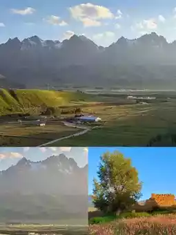 6. Laima Danxia Town: Known as "China's Walking Horse Culture Capital," this ethnic gem hosts regular horse races and tap performances. Its sunset-kissed architecture against snow peaks creates mesmerizing vistas. Winter drapes it in monochrome elegance. Accessible via 30-minute drive (G317, near section 725) or 1-2 hour scenic hike.