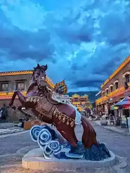 Strolling slowly along the prayer wheel path, prayer flags fluttering in the wind with a rustling sound, the majestic statue of the city on the distant mountaintop, carved pillars below, and a sky so blue it looks unreal above. Sitting on any stone step, the sunlight warms you, and even the breeze carries the scent of butter tea.