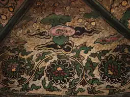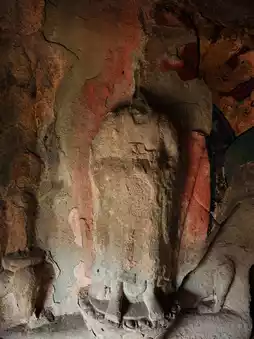 The grottoes face south with their backs to the north. Currently, 6 caves remain, with caves 1, 2, and 3 from the west being Buddhist caves featuring Northern Dynasty grotto statue styles. They all have rectangular floor plans with inverted-bowl shaped ceilings decorated with painted lotus flower patterns. The cave entrances are rectangular with flame-shaped lintels, and two guardian figures carved on both sides of the doors. Inside Cave No. 3, low platforms are set on all four sides, with niches for Buddha statues carved into the north, east, and west walls. Each niche contains one Buddha with two attendants. The outer walls of the three niches are fully carved with thousands of Buddha images, and the names of donors are inscribed on both sides of the door on the south wall. About 60 meters to the east, there are 3 more stone caves. Two of them were carved in the 32nd year of the Wanli period of the Ming Dynasty (1604), with inscriptions reading "Three Teachings Cave," "Three Virtues Cave," and "High Cave." The clay sculptures inside these caves have been completely destroyed. Currently, 3 stone tablets recording the creation of these three caves still remain.