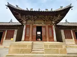 The Ancient Zhong Temple faces south with its back to the north, divided into upper and lower courtyards. Along the central axis are the mountain gate, the No-Beam Hall, and the main hall, with wing rooms and side halls on both sides. Outside the mountain gate, there are four-room eastern and western opera stages. On the west side of the mountain gate, there is a brick-arched side entrance with the inscription "Yandi Zhong Temple," which was originally the entrance to the temple. The No-Beam Hall, also known as the Crown Prince Hall, is the main building of the Ancient Zhong Temple. It is a single-bay square structure with a xieshan (hip-and-gable) roof, five-tier bracket sets with downward cantilevers, round wooden columns, and large architraves. The roof has nine ridges and is covered with ordinary barrel tiles laid in an upward-facing pattern.