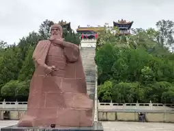 It was already evening, with a cold wind blowing. Looking up, I saw extremely steep steps. Taking a deep breath, I climbed steadily without stopping. When I reached the platform, I saw a huge statue of the famous Zhao general Lian Po. Although old, Lian Po still loved food. Unfortunately, due to a petty remark, "three arrows were lost in a moment," he lost the chance to serve Zhao. In the end, with a heart willing to serve the country but nowhere to offer his service, he died in melancholy. Behind the statue, a poem praising Lian Po was carved: "Fortify the walls and gather the elite, face danger with seasoned courage. Bees swarm the state of Mi, tigers watch Wuan City. One meal still strengthens the heart, a thousand gold already spent. Shouchun thinks of Zhao’s soldiers, tears flow down the white beard." At the time, I didn’t catch the author clearly, but later searching on Doubao, I found it was by the Qing dynasty poet Zhang Chenglun. However, there are differences in the third and fourth lines; Doubao’s version reads, "Bees swarm the land of Sanjin, tigers watch Wanshan City." I’m not sure which is the original.