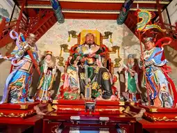 Further up is the Xuan Yun Temple under renovation. Outside the mountain wall of the hall, there were many paint and varnish buckets. The doors, windows, and eaves pillars of the hall were bright and colorful, and the Buddha statues inside were also full of spirit.
