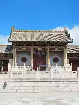 Guzhong Temple, also known as the Yan Emperor Temple: Highlights include the Crown Prince Hall, a Yuan Dynasty relic also called the No-Bracket Hall, featuring a covered caisson ceiling with exquisite and unique structure.