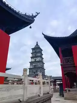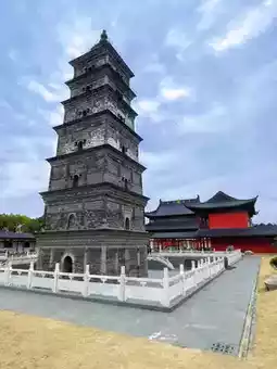 Zhenguo Temple, also known as the West Pagoda, is known as the "Big Wild Goose Pagoda of the South" and is also known as the Pagoda Bay of the Beijing-Hangzhou Grand Canal. It is a national key cultural relic protection unit and a national 3A-level tourist attraction. It is a square seven-story brick tower, 35.36 meters high. The top of the tower is a bronze gourd with the eight characters "good weather, peace and prosperity" engraved on the surface of the gourd.