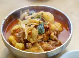 It features generous portions perfect for reviving a weary hike, especially the signature dish, chicken stew, cooked in a pot lid.