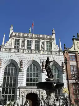 Located in front of the Artus Court, the statue on the fountain is Poseidon, the patron saint of Gdansk.
