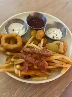 This was a fun surprise — think Korean street food meets Western snack plate: fries, nuggets, and what tasted like battered fish bites. The tartar sauce was homemade and legit — tangy, creamy, and kind of addictive.