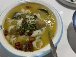 We ordered a generous spread: Sauerkraut Fish, Sweet Vinegar Pork, Stir-Fried Broccoli, Dried Chilli Chicken Cubes, Stir-Fried Pork Belly with Green Chilli, and Braised Sea Cucumber. Each dish was flavorful and well-prepared. The Sauerkraut Fish came in a spicy, tangy broth that was both comforting and addictive. The Sweet Vinegar Pork had a lovely crispy texture and a perfectly balanced sauce. The Dried Chilli Chicken had that signature mala kick we enjoyed, and the Stir-Fried Pork Belly was aromatic and tender. The Braised Sea Cucumber was delicate, and even the simple Broccoli dish was fresh and crisp.