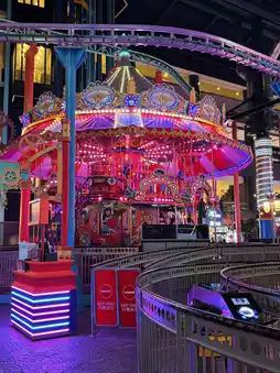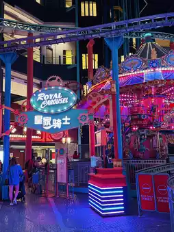 The Royal Carousel ride gave me serious nostalgic feels — but with a major glow-up! Instead of a simple kiddie ride, this one is a dazzling, double-decker masterpiece spinning to cheerful music. You can choose to ride on horses, lions, or even elephants!