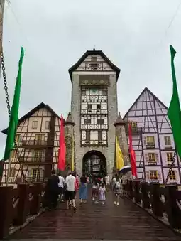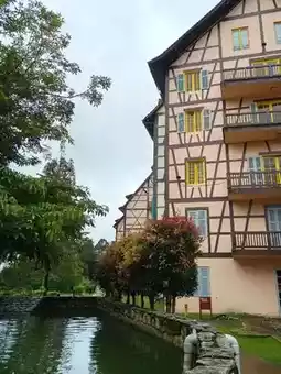 During my trip to Malaysia Genting, I made a scenic detour to Colmar Tropicale, a charming French-themed village nestled in the cool highlands. The architecture instantly caught my eye—beautiful pastel buildings with wooden beams, cobblestone walkways, and a grand entrance tower that made me feel like I’d stepped into a storybook. Even though it was a bit cloudy, the atmosphere felt calm, cozy, and perfect for a peaceful walk.