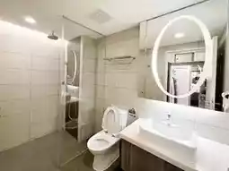 The infinity pool with a view is a big draw. Some guests also enjoy the gym, mini-mart, and nearby cafes.
