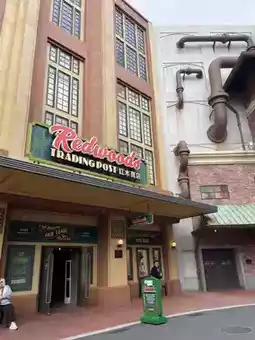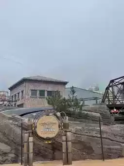 An outdoor amusement park with a great atmosphere and cool weather. There are various rides to enjoy, and an app is available to check ride wait times.
