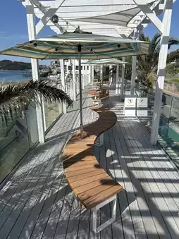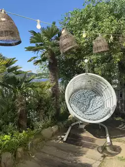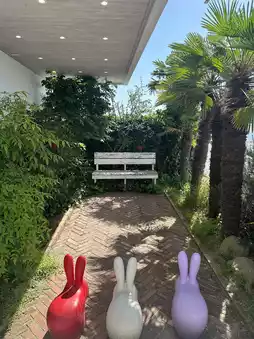 ✨ Stylish terrace seating, and even a space with a cute rabbit sculpture!