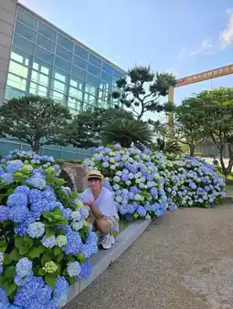 The hydrangeas with an ocean viewโthis is truly a rare and beautiful scene. I visited at 4 PM, and there were surprisingly few people around. The weather was great, so I had an amazing time taking photos. The blue hydrangeas and the ocean complement each other so beautifully. You could easily take a million profile pictures here! For this year, the hydrangeas in Geoje Island can be summed up with this one location. If you haven't been yet, make sure to visit soon!