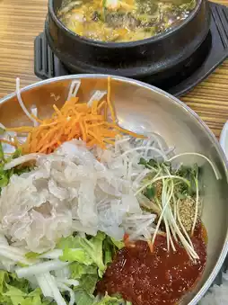 After enjoying the sunrise, I headed to a nearby restaurant to savor some fresh Geoje Island mulhoe. 🥢🍲