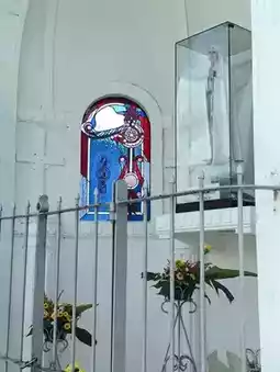 The interior is not too fancy but functional, and the organ in the church is beautiful. The altar and the stained glass windows behind the altar are not very large, but they are pure white in design, and the statue of the Virgin Mary in the church is the most beautiful.