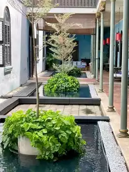 After settling in Penang, this and characteristic mansion is covered, using a large number of European iron columns and parquet tiles incorporating Chinese carvings, and was selected as a filming location for Indochina, Crazy Asian Rich and several films