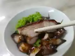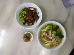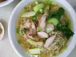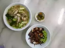 This renowned noodle shop is located in George Town, Penang Island, Malaysia. The shop is quite large and always bustling with customers. We ordered a bowl of wonton noodles and a plate of char siu (barbecued pork). The taste was quite good, and the best part is that the owner can speak Thai, probably because many Thai people visit the shop regularly. The prices are also reasonable. If you have the chance, I highly recommend stopping by to give it a try. It's an experience you wouldn't want to miss.