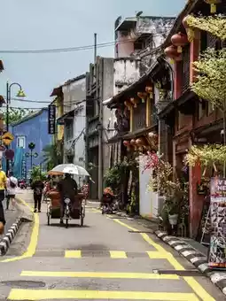 George Town, located in Penang’s old town area in Malaysia, is perfect for a leisurely walk. The architecture blends Eastern and Western styles — you’ll see traditional Hokkien-style ceramic-tiled eaves alongside grand European colonial buildings.