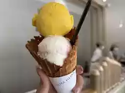 Homemade ice cream shop in Penang with a very long line. Homemade waffle cones, fresh, fragrant, crispy and delicious. The ice cream is good and fragrant. Can't stop eating because it's so delicious. It's a great way to cool down. 😆