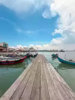 Walk along the century-old wooden boardwalk and buy some Malaysian souvenirs