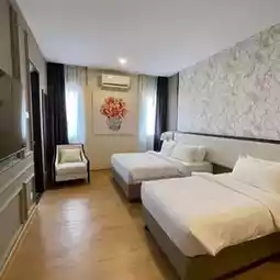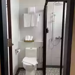 Book a room as a Family Room With Breakfast. The room is not narrow. The design is beautiful and new. There is a private bathroom (with a bidet, but it is a Malaysian style spray nozzle). There is a hair dryer, iron, hot water kettle as usual. And a large TV to watch YouTube and Netflix 🤷🏻♀️👍✨