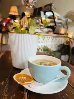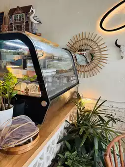 Cara Caro does such a good job blending old and new. You’ll see manual typewriters, rotary phones, and a red espresso machine gleaming behind the counter. Everything from the drink station to the cake display has this warm, rustic feel but with fresh ideas.