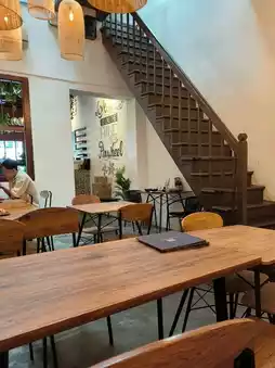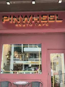 Pinwheel Resto Café instantly caught my eye with its warm pink exterior and cozy vibe. Once inside, I was charmed by the rattan lights and the mural of a girl holding a pinwheel—it’s so cute and artsy! The place had a relaxed atmosphere, perfect for brunch or catching up with friends.